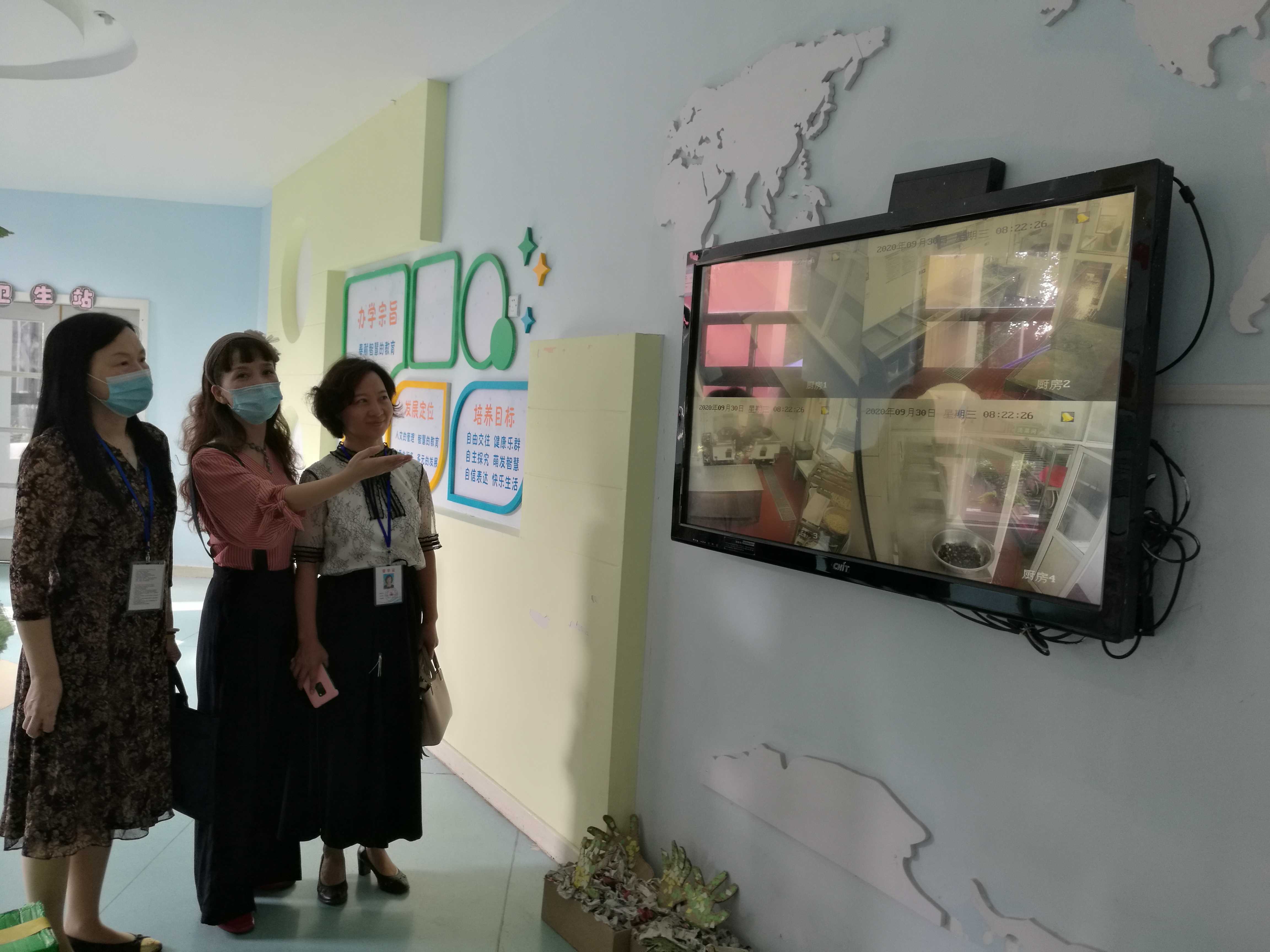 两位督学首先来到了园门口的宣传栏前驻足观看,详细询问了公示栏的收费标准、资助政策指南等,对营养分析报告、配送菜单及幼儿食谱等进行了关切的询问。接着,两位督学对食堂安全进行了重点督查,查看了明厨亮灶全程监控管理以及48小时食品留样。疫情防控工作也是本次督查的重点,两位督学查看了疫情防控的物资储备情况,来访人员的信息登记、每日两次体温测查和记录、教玩具和专用室的消杀记录等,提出疫情防控工作一定要扎实落实,确保师生生命安全。